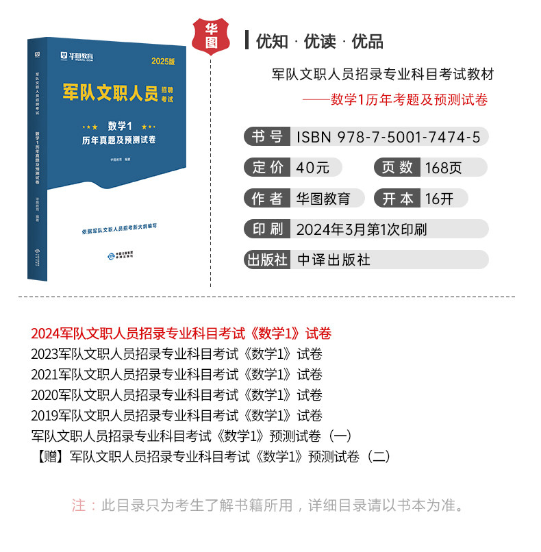 【华图图书网】为您提供2025版军队文职人员招聘考试【数学1】历年 1本,更多最新全国通用军队文职图书考试网校课程及视频请关注华图图书网!